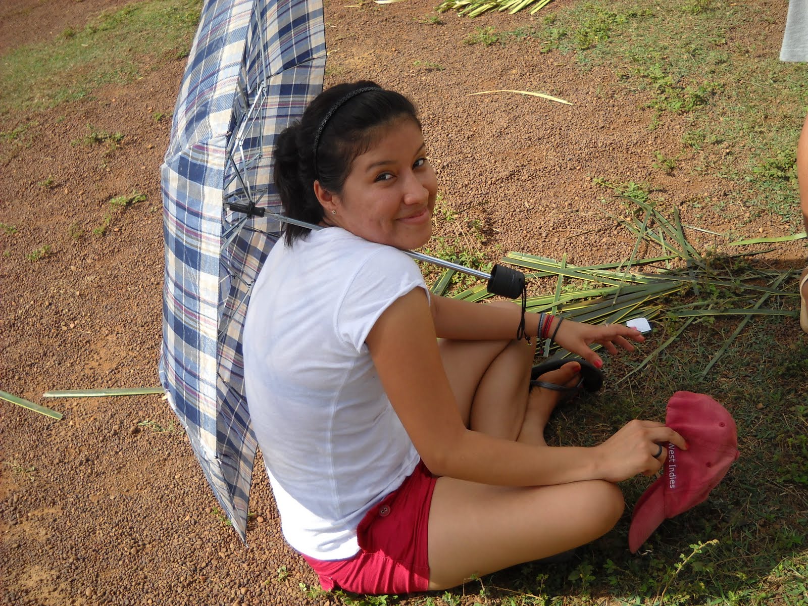 Once grated, you can do a lot with it. Junita bakes buns (scone-type pastries), Cleonicia and Jose baked me a coconut cake for my birthday. Junita grates it like carrot shreds, dyes it red then rolls it in sweet dough to make salara, a Caribbean pastry. Once you grate the coconut, you pass water through the meat, straining into a cloth and getting all that milk out to add to curries or cook up rice. And while visiting my host family, I watched Meena make coconut oil, a popular cooking, hair and body oil. She grated it, strained out all the milk, let it set over night, then boiled it over a fire until all the fibers and not oil parts got burned into tiny ball-like morsels that she strained out. Coconut oil was what was left. It smells AMAZING.